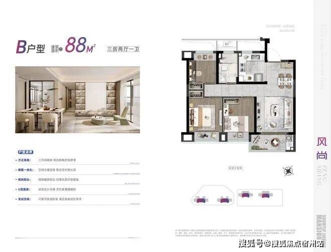 三房两厅一卫的格局,兼具功能性与尺度感。✅✅深业·深嘉上府售楼处电线✅✅