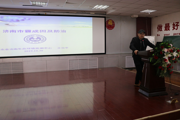 本次活动在齐鲁实验学校报告厅举行,二年级级部主任孔令利老师主持。来自济南市环境监测中心站的工程师王治非以图文并茂的方式形象地描述了霾的定义、来源与形成,并向队员们讲解了空气污染对身体健康产生的危害以及应如何预防空气污染等。