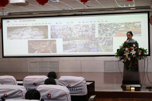 来自济南市环境研究院的工程师李倩玉,从土壤的定义、分类、构成、常见的土壤污染、生活垃圾如何分类等八方面内容,结合PPT图片生动地向队员们展示并讲解了环境保护知识,同时教育队员们如何从我做起,从身边小事做起,养成自觉维护环境的习惯。